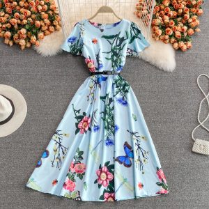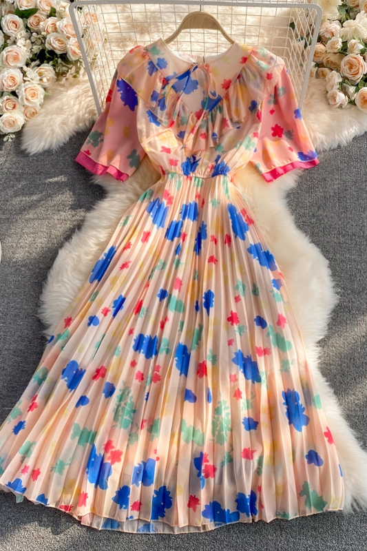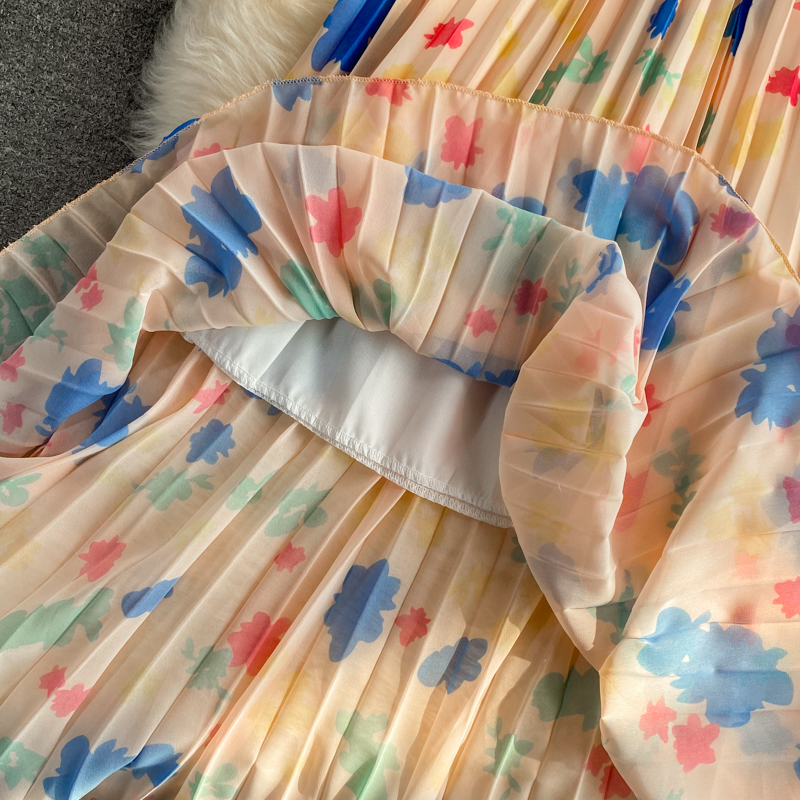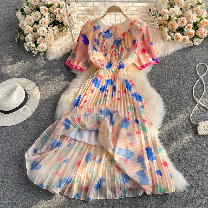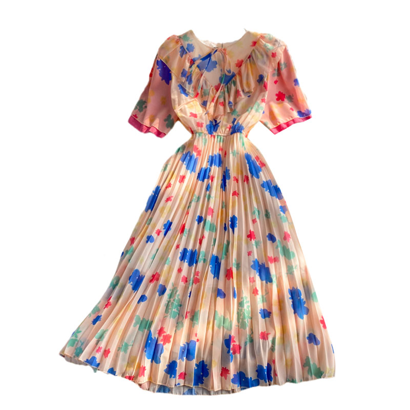 Cheap Dresses, Buy Quality Women’s Clothing Directly from China Suppliers:Summer New French Style Retro Kikyo First Love Super Mori Tight Waist Slim round Neck Chiffon Pleated Dress