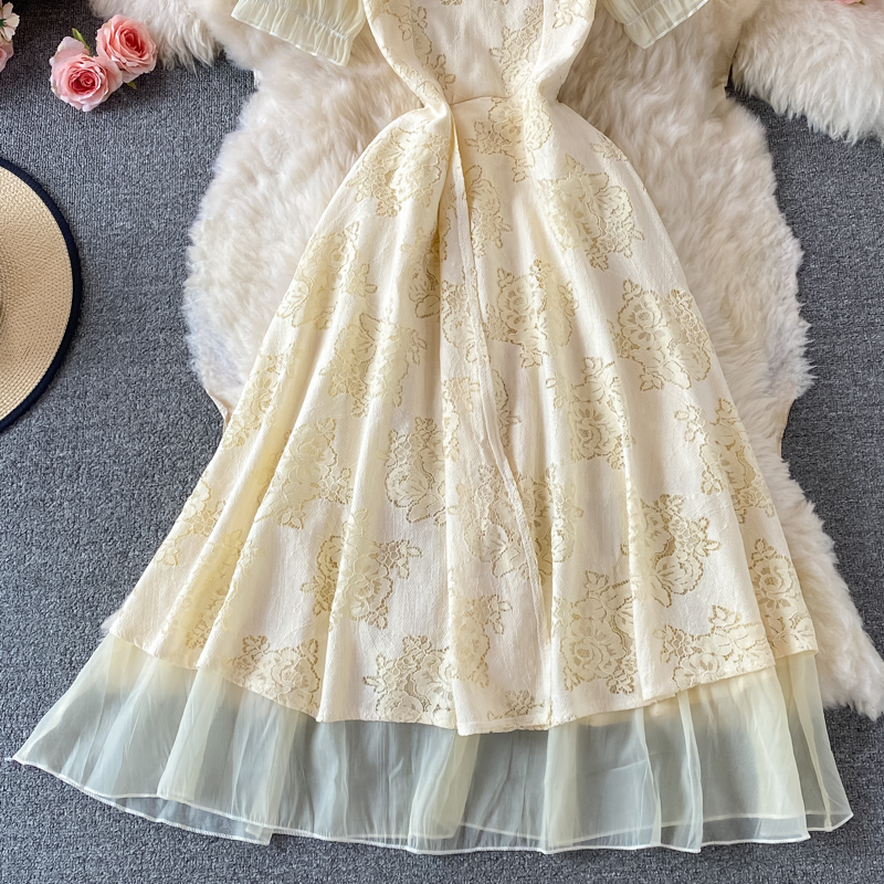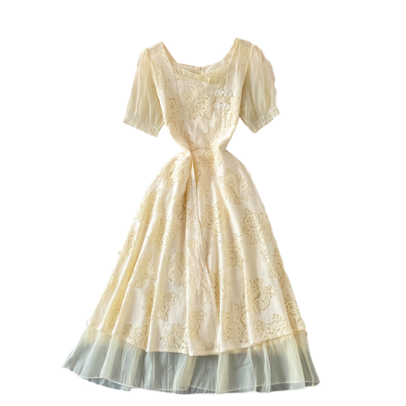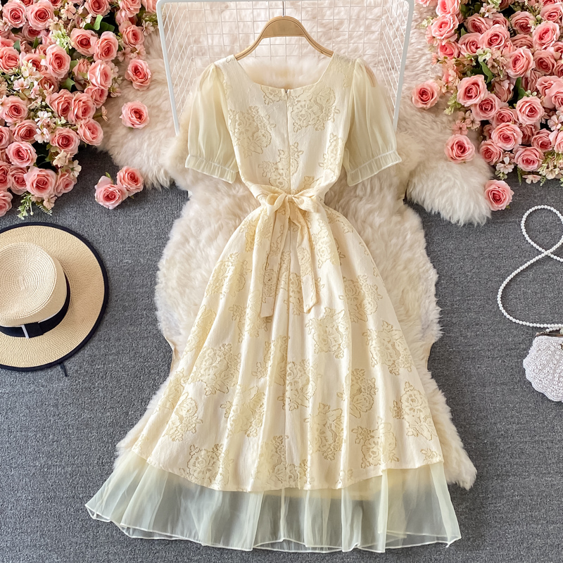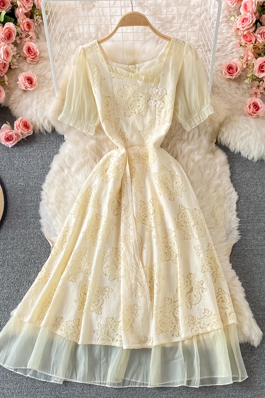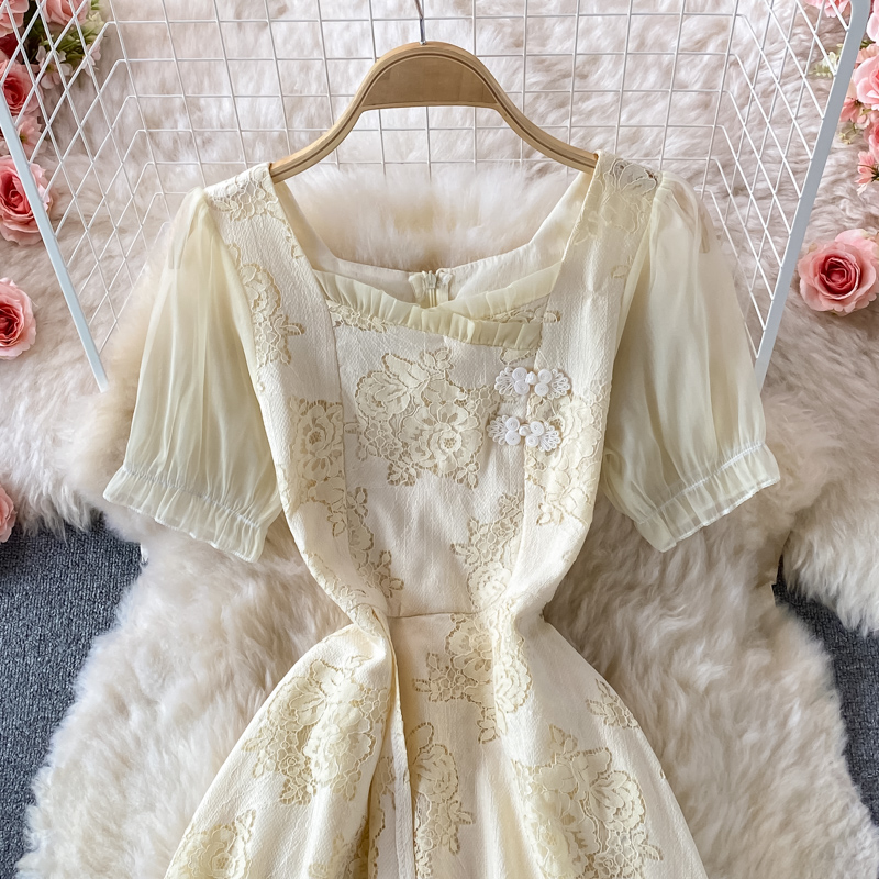 Cheap Dresses, Buy Quality Women’s Clothing Directly from China Suppliers:Gentle Square Collar Lace Dress Summer New Mid Length Waist Slimming Machine Embroidery First Love Skirt
