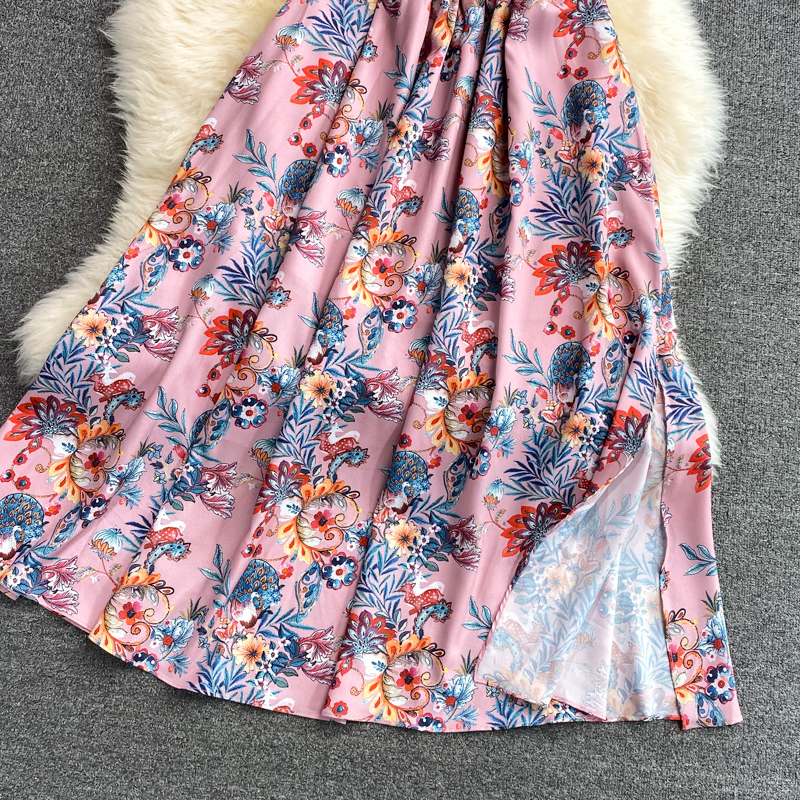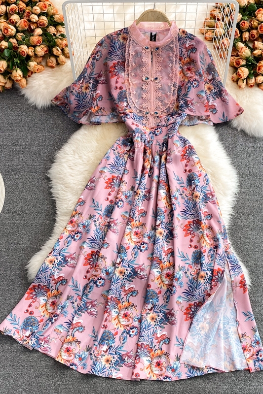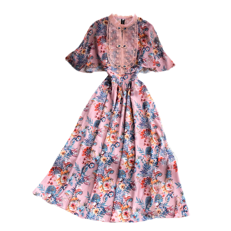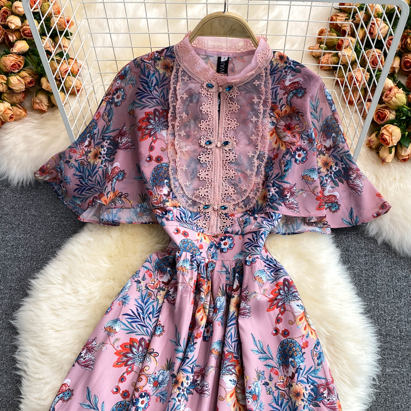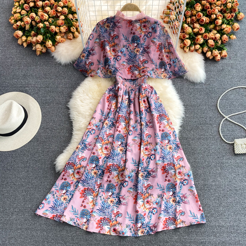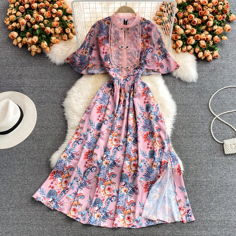 Cheap Dresses, Buy Quality Women’s Clothing Directly from China Suppliers:Summer Shawl Improved Cheongsam Western Style Chiffon Floral Dress Vintage Buckle Summer Figure Flattering Wide Hem Long Dress