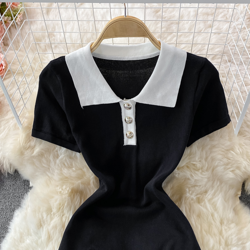 Cheap Dresses, Buy Quality Women’s Clothing Directly from China Suppliers:Western style contrast color sweet dress female summer new loose and thin temperament short sleeved T shirt skirt