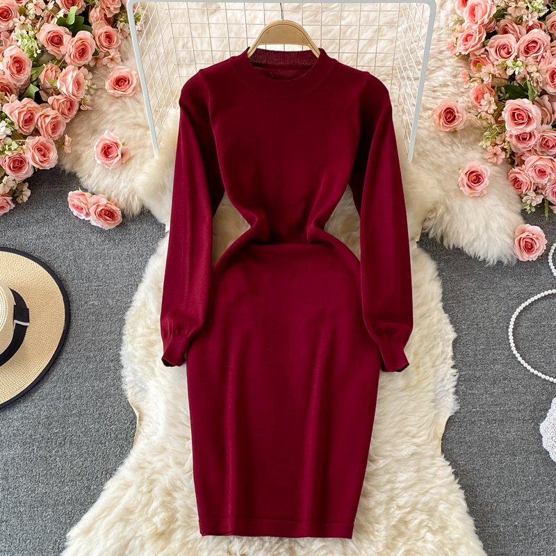 Cheap Dresses, Buy Quality Women’s Clothing Directly from China Suppliers:round Neck Stretch Knitted Dress for Women Autumn and Winter Slim Fit Slim and Sexy Overknee Sweater Dress Base Narrow Skirt