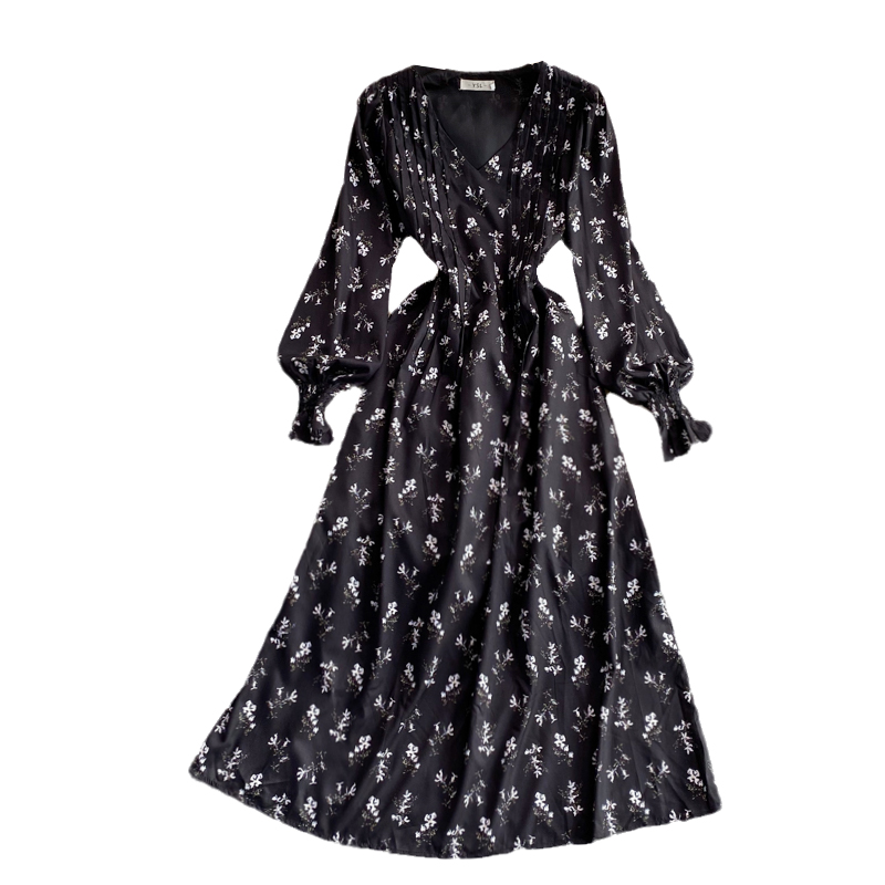 Cheap Dresses, Buy Quality Women’s Clothing Directly from China Suppliers:Autumn New Lightly Mature Adult Lady like Woman Puff Sleeve V neck Floral Dress Elegant Graceful Swing Long Dress