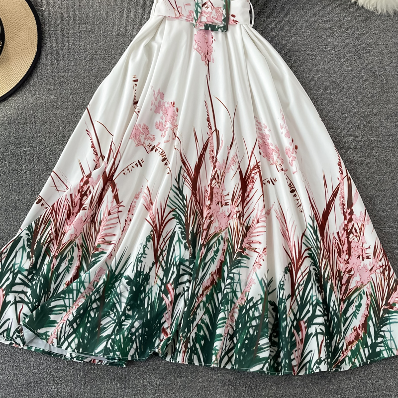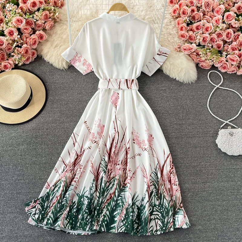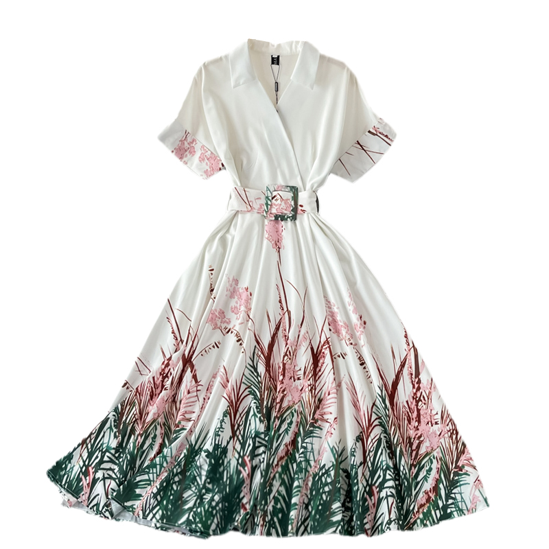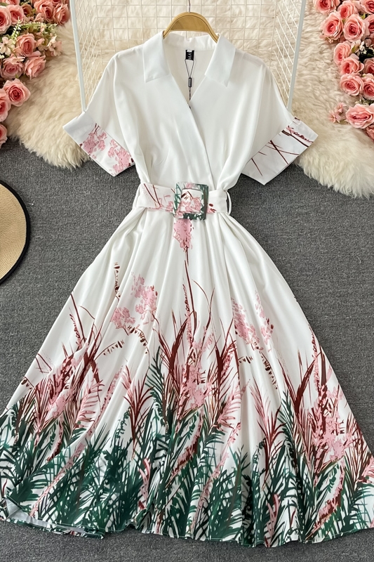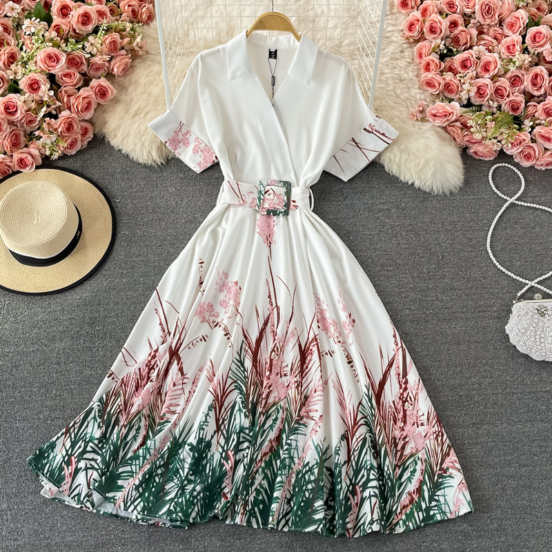 Cheap Dresses, Buy Quality Women’s Clothing Directly from China Suppliers:European Station Summer New French Retro Short Sleeve Printed Long Dress Waist Slimming Floral Large Swing Dress