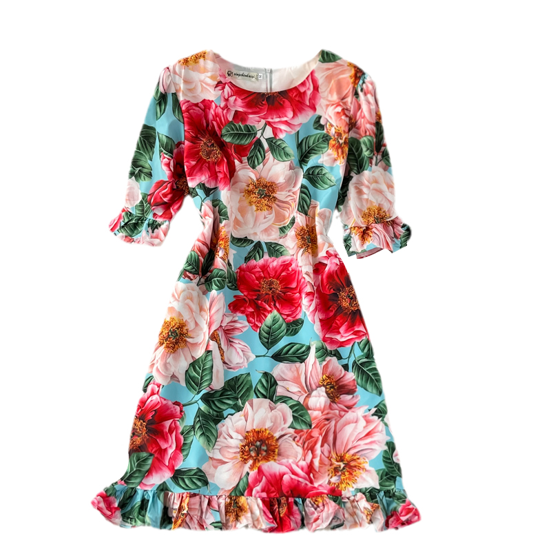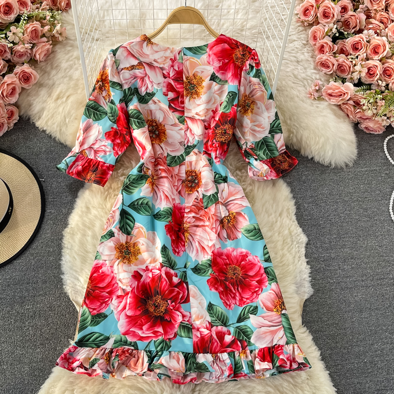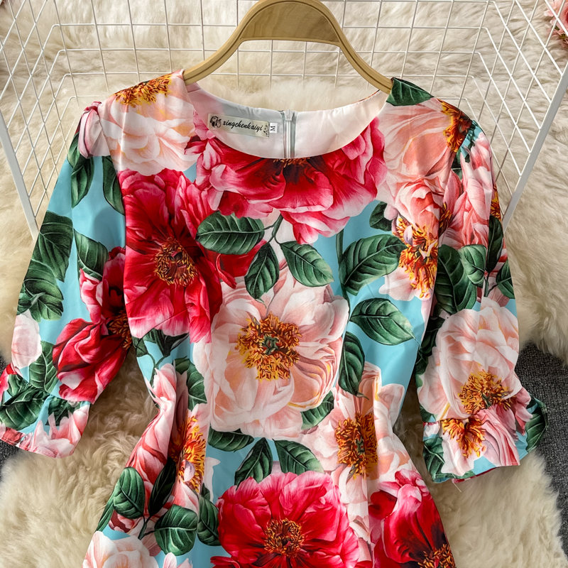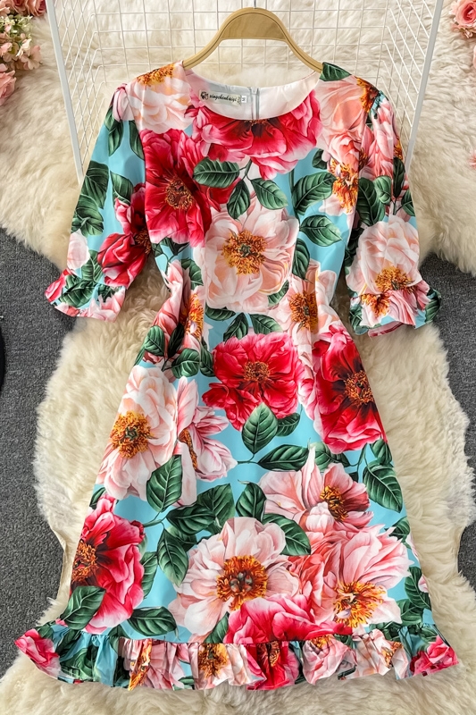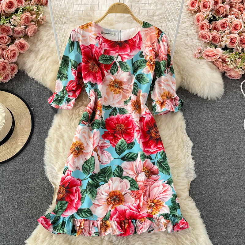 Cheap Dresses, Buy Quality Women’s Clothing Directly from China Suppliers:Summer New Fashion Elegant Graceful round Neck Flared Sleeves Printed Small Ruffled Dress Short Sleeve