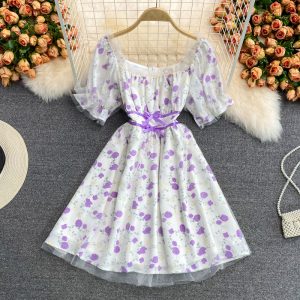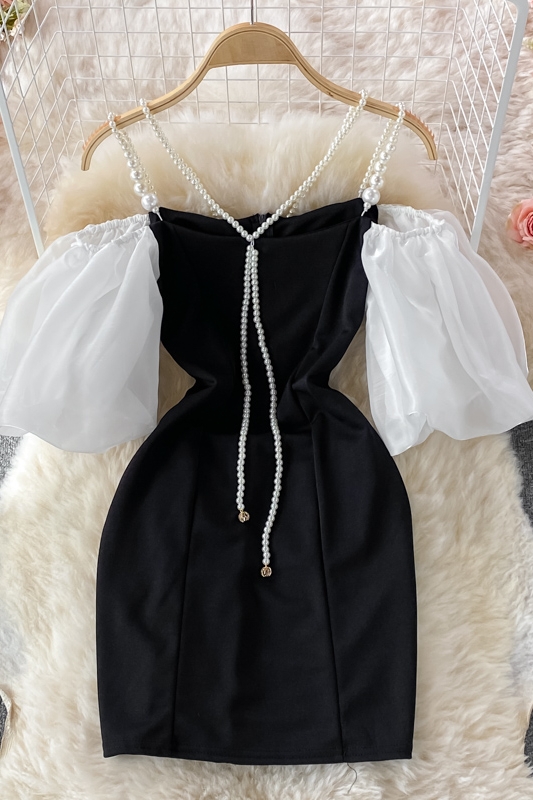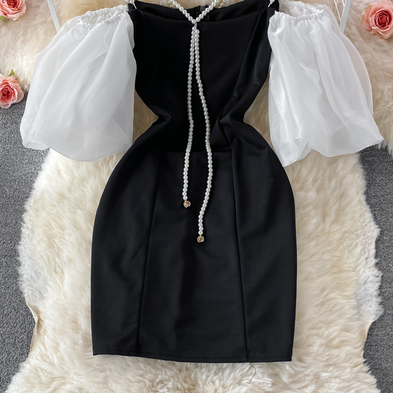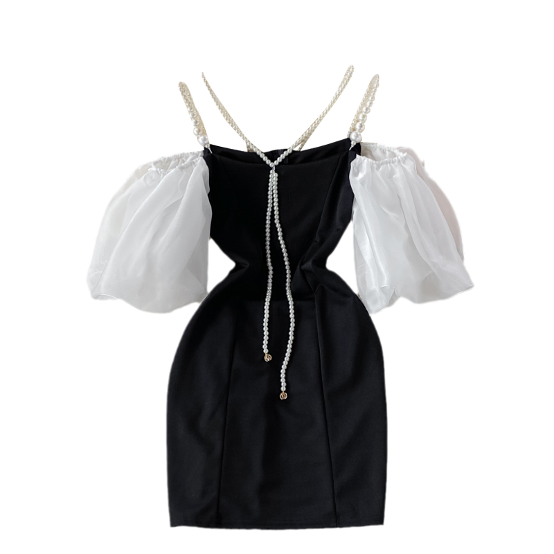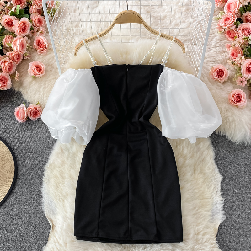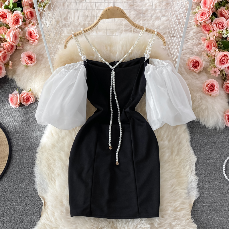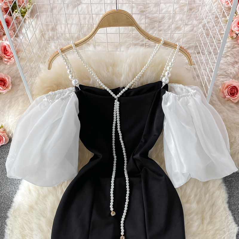 Cheap Dresses, Buy Quality Women’s Clothing Directly from China Suppliers:Socialite Style off Shoulder Pearl Chain Strap Dress 21 Summer New Elegant Retro Slimming Puff Sleeve A line Dress