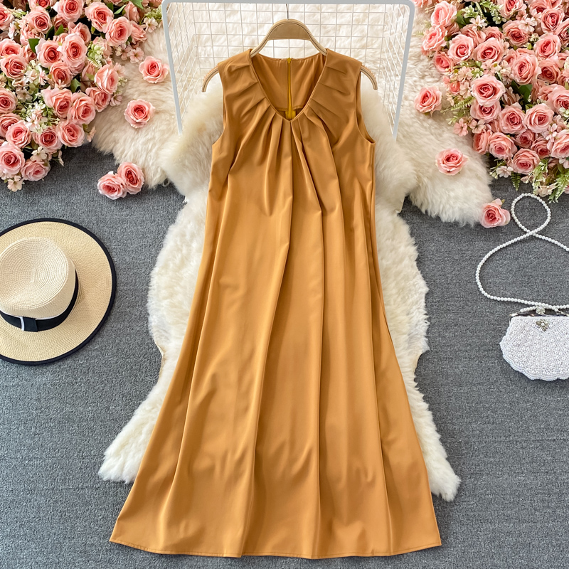 Cheap Dresses, Buy Quality Women’s Clothing Directly from China Suppliers:French Style V neck Pleated Dress Summer New Design Sense Loose High End Affordable Luxury Elegant Big Hem Long Dress