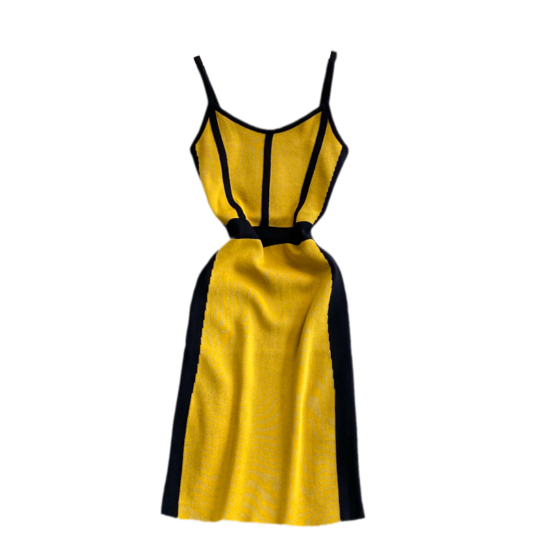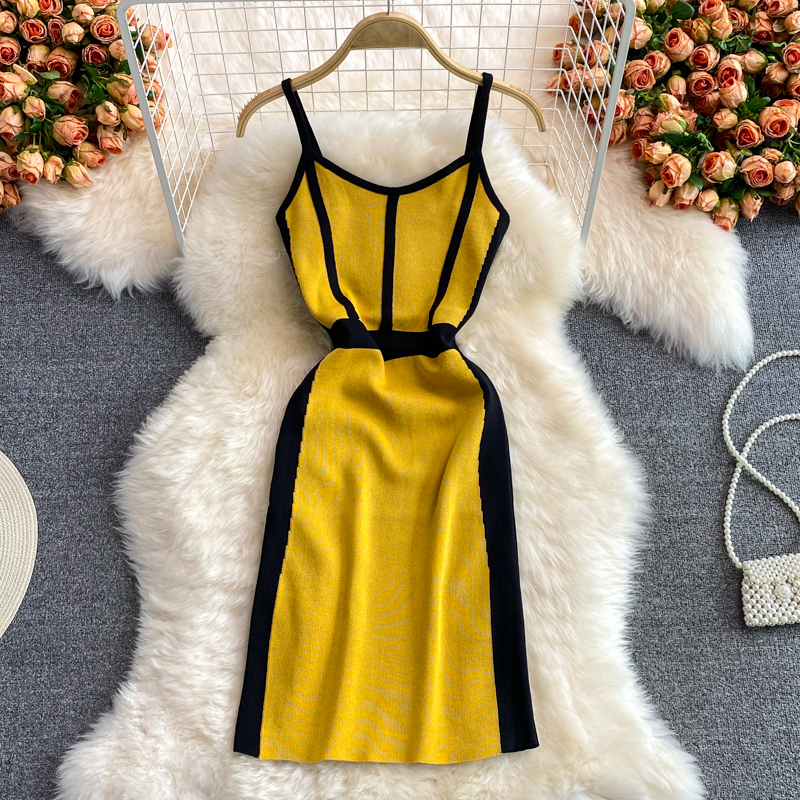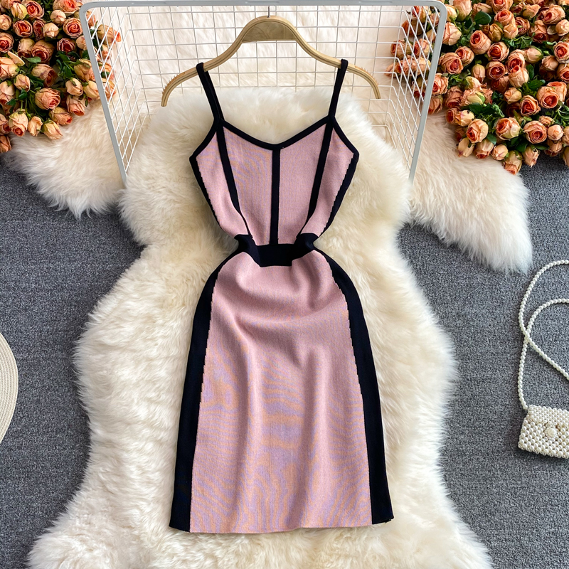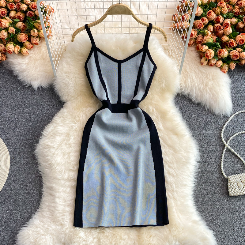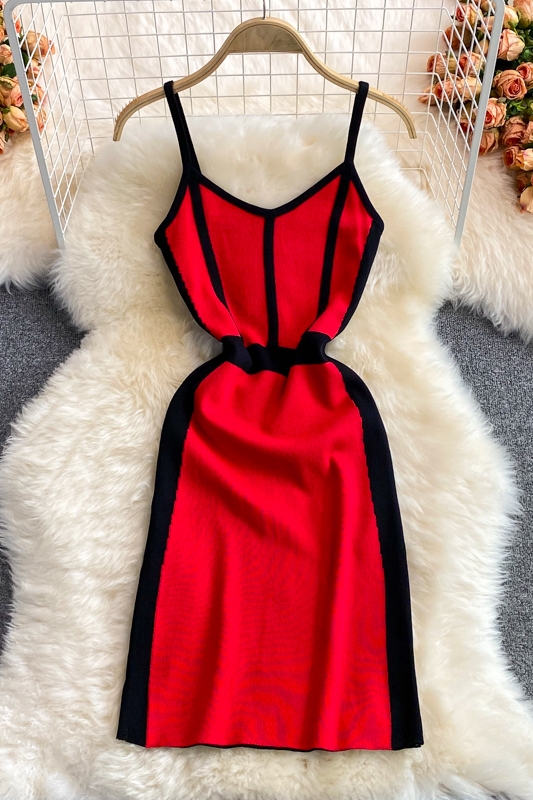 Cheap Dresses, Buy Quality Women’s Clothing Directly from China Suppliers:Korean Style Summer New Contrast Color Knitted V neck Strap Vest Skirt Small Elastic Hip Bottoming Dress