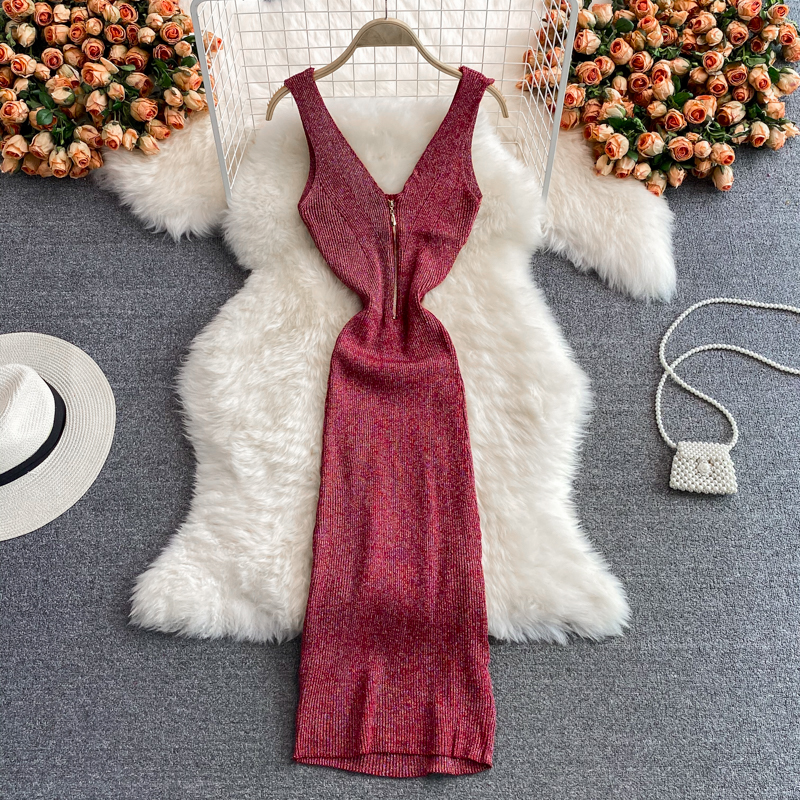 Cheap Dresses, Buy Quality Women’s Clothing Directly from China Suppliers:Summer New Goddess Temperament Scheming V neck Waist Stretch Fil Lumiere Weave Dress Graceful Vest Skirt