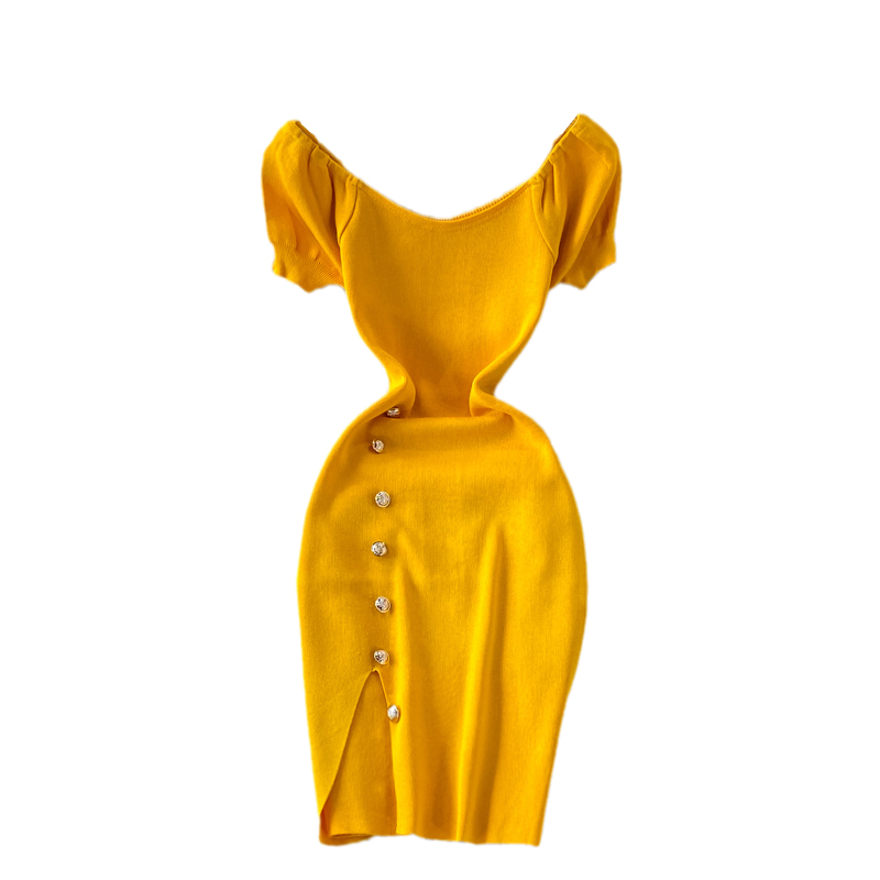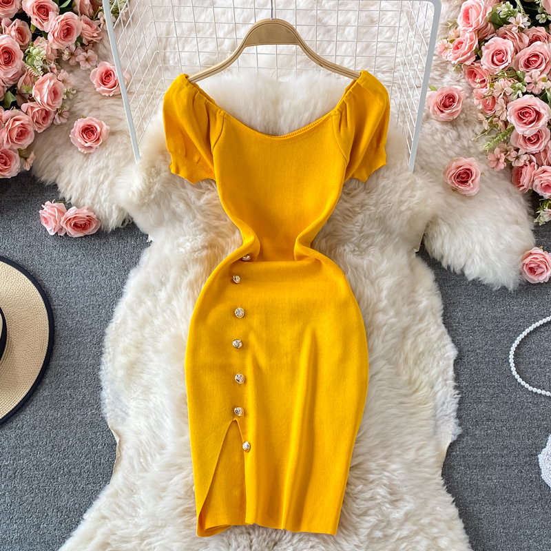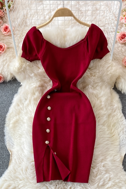 Cheap Dresses, Buy Quality Women’s Clothing Directly from China Suppliers:French Style Temperament Goddess Temperament Purple Square Collar Dress Summer New Sweet Slim Fit Puff Sleeve Slit Sheath Skirt