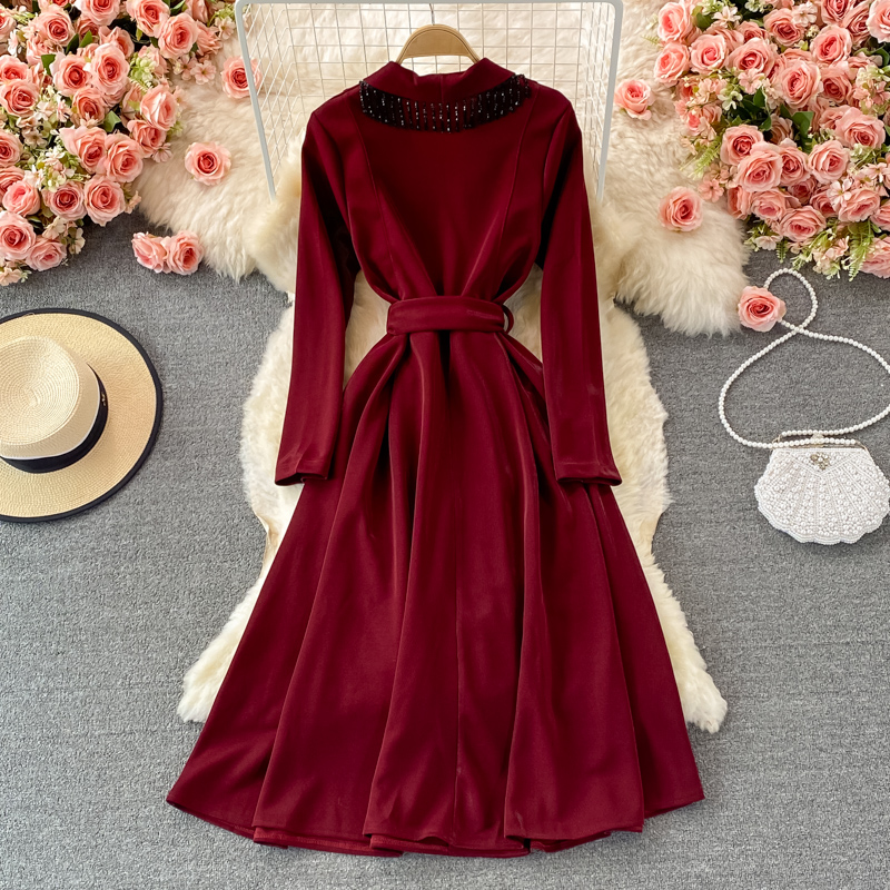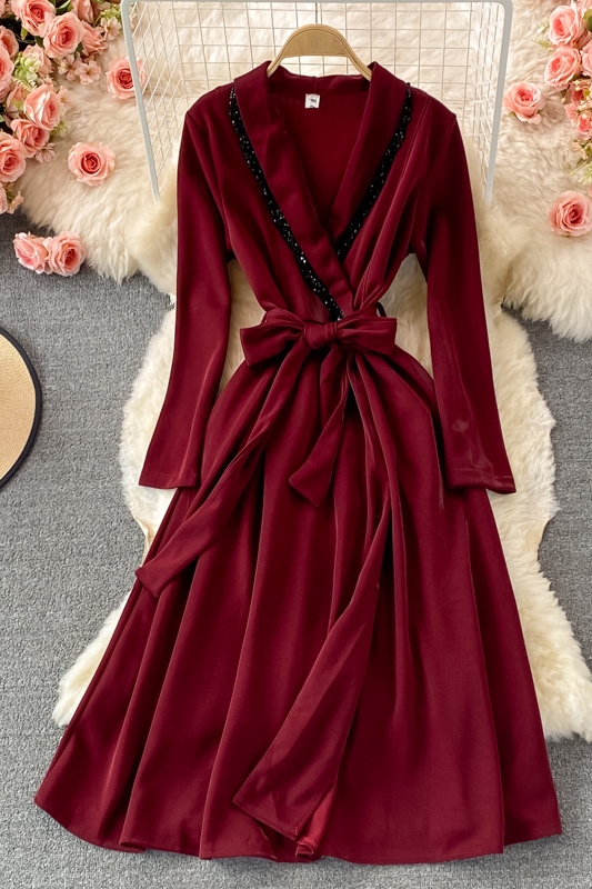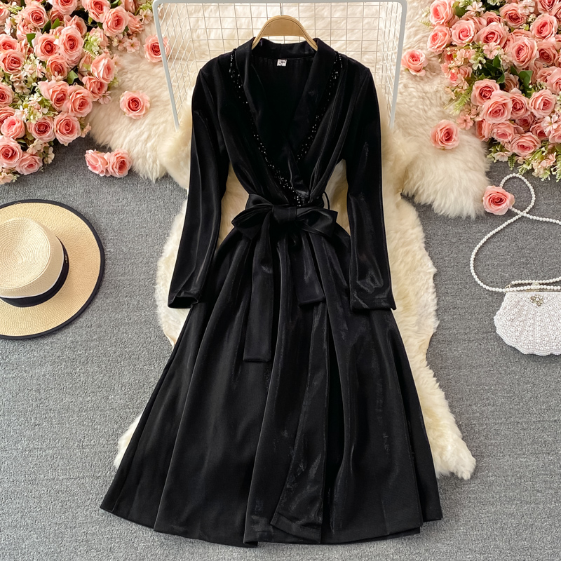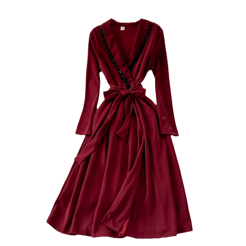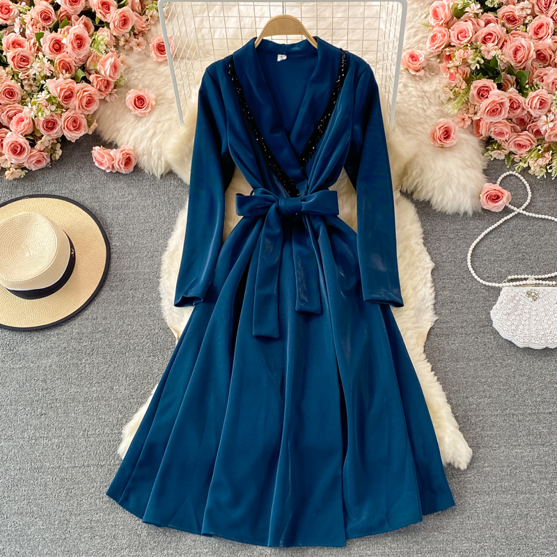 Fashion windbreaker women's mid-length over-the-knee V-neck dress for autumn