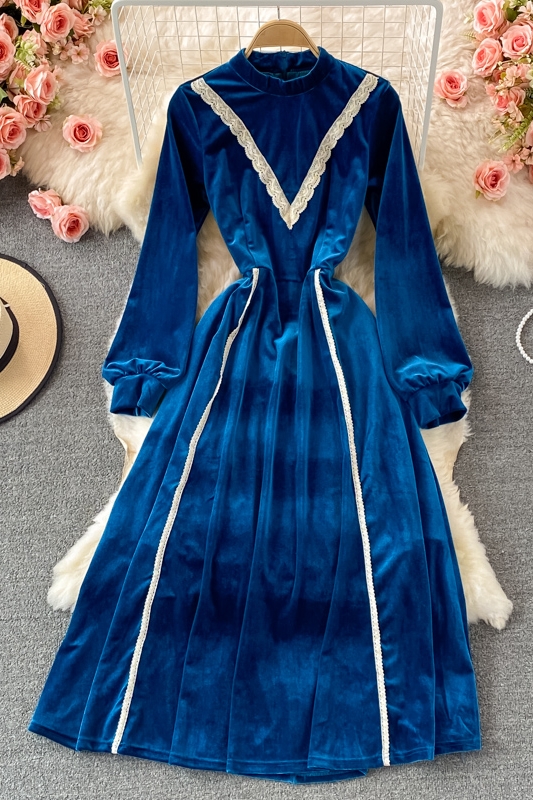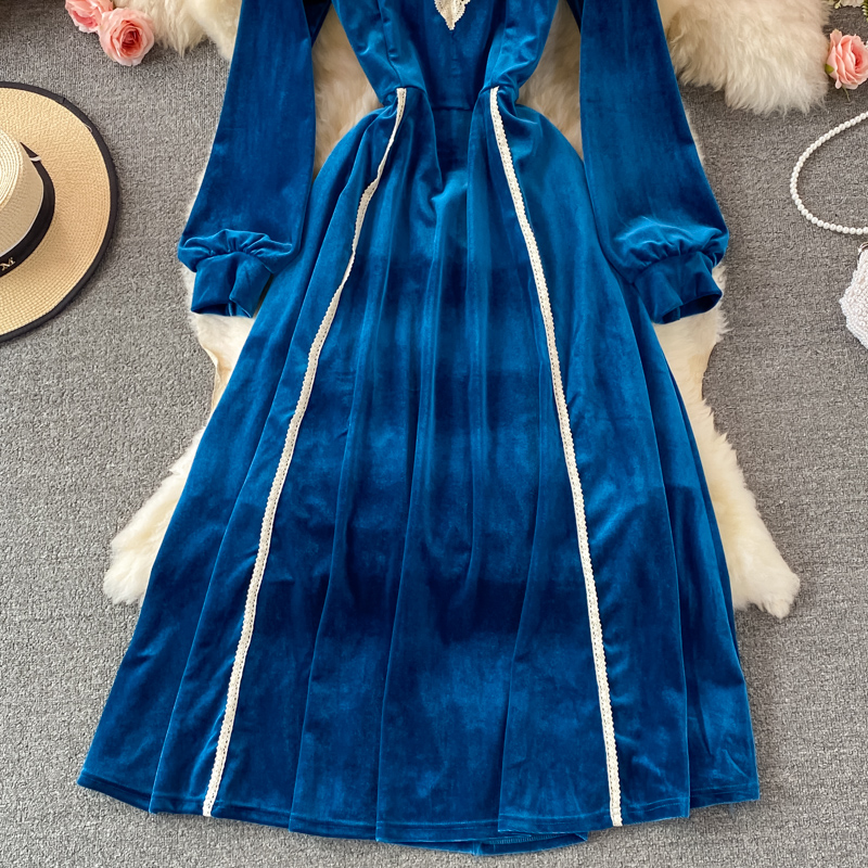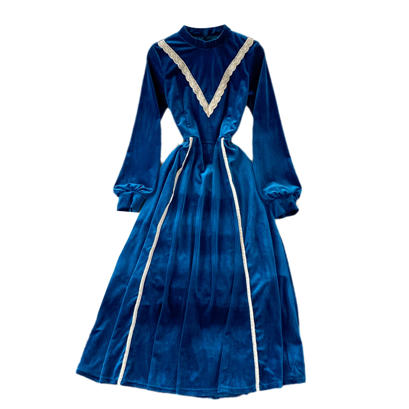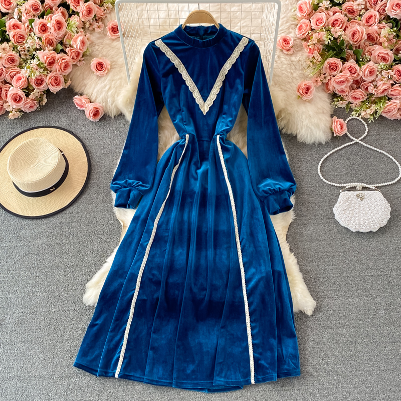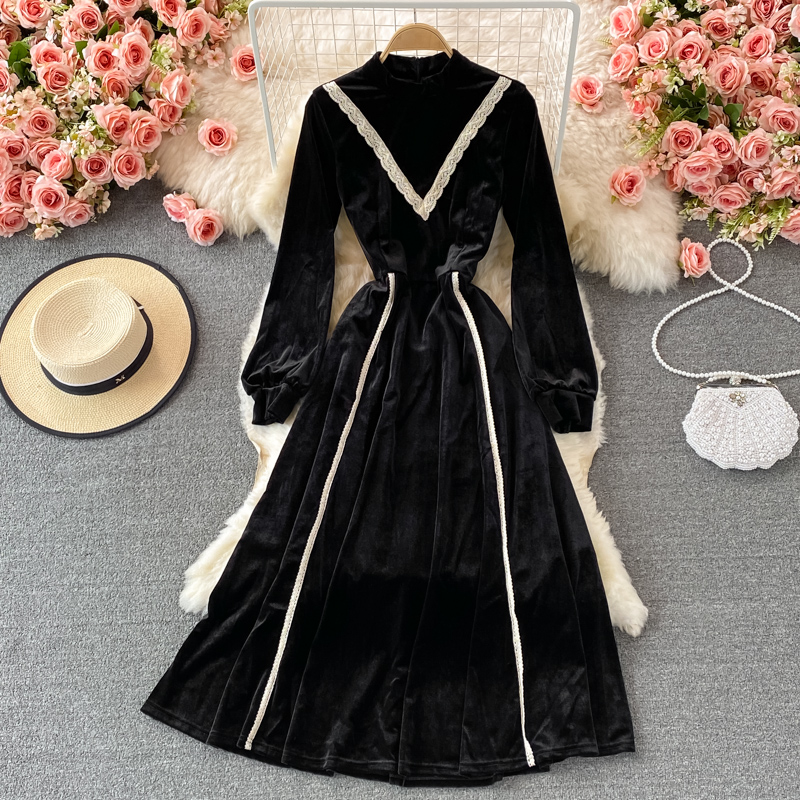 Cheap Dresses, Buy Quality Women’s Clothing Directly from China Suppliers:Retro tea break skirt autumn and winter French high end light luxury temperament was thin stand up collar velvet dress