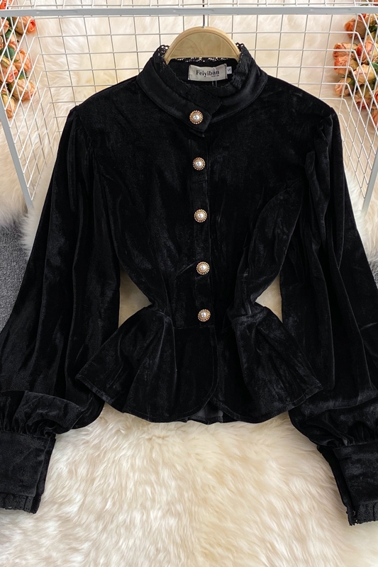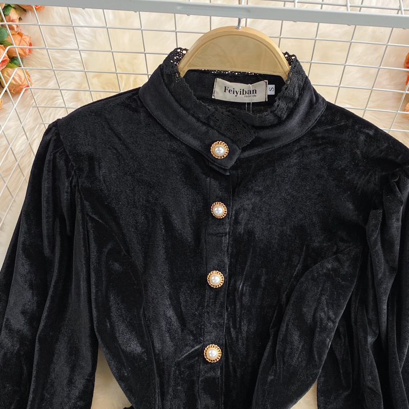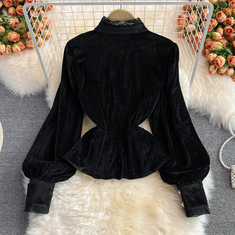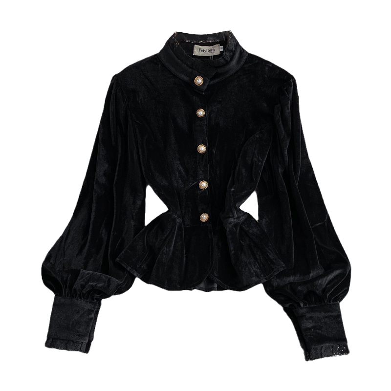 Cheap Jackets, Buy Quality Women’s Clothing Directly from China Suppliers:Autumn and Winter Vintage Court Style Lace Lace Stand Collar Silk Shirt Fashion Waist Controlled Slimming Flounce Short Top