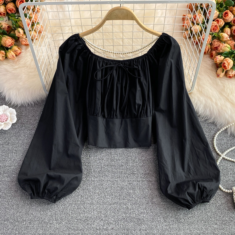 Cheap Shirt, Buy Quality Women’s Clothing Directly from China Suppliers:Autumn New Retro Fairy French Style Square Neck Cinched Slimming Lantern Sleeves Shirt Short Western Style White Top for Women