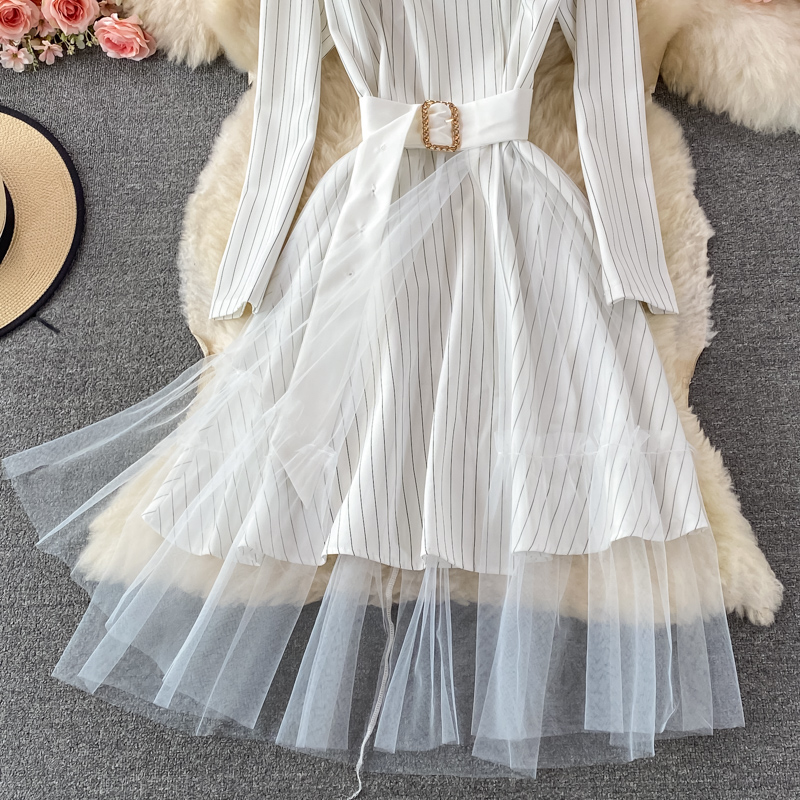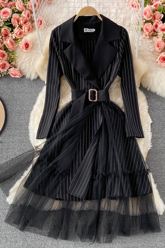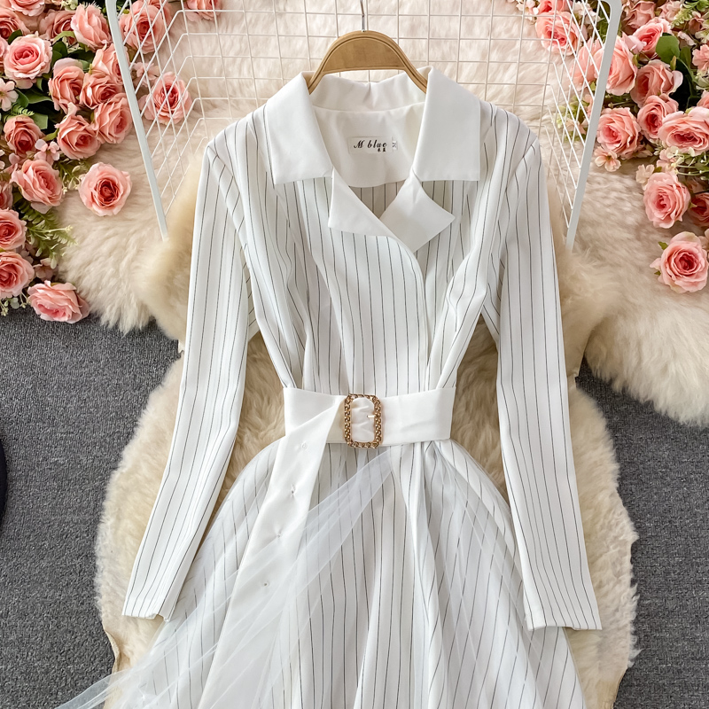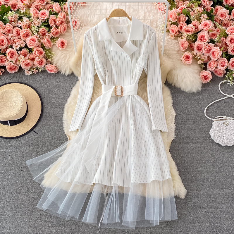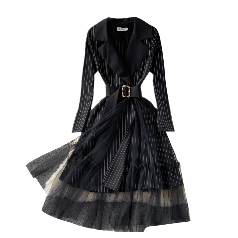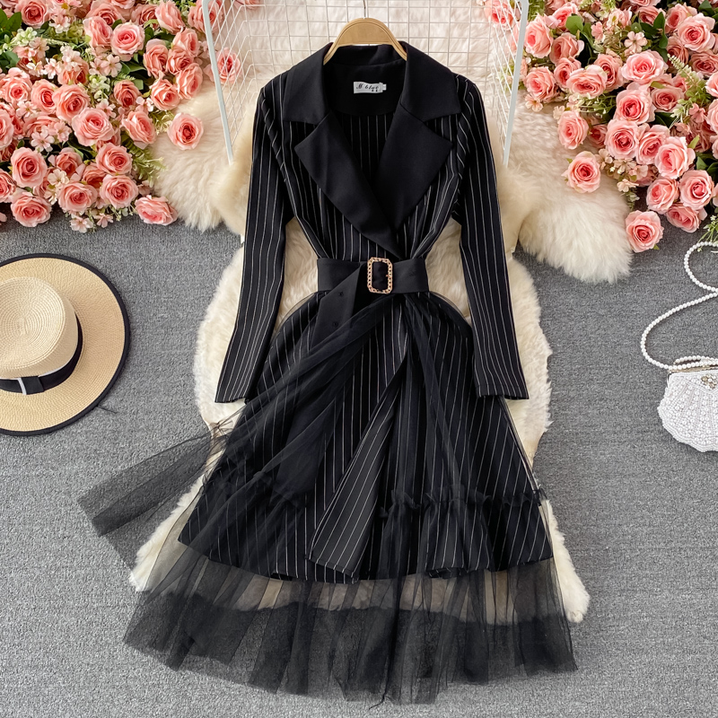 Cheap Dresses, Buy Quality Women’s Clothing Directly from China Suppliers:Fall New French Ol Business Temperament Mid Length Waist Slimming Suit Collar Stitching Mesh Dress