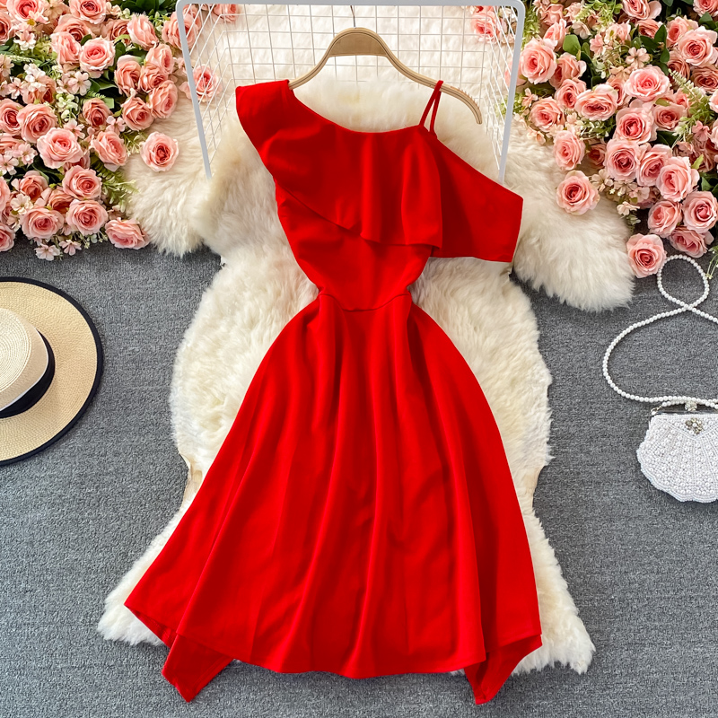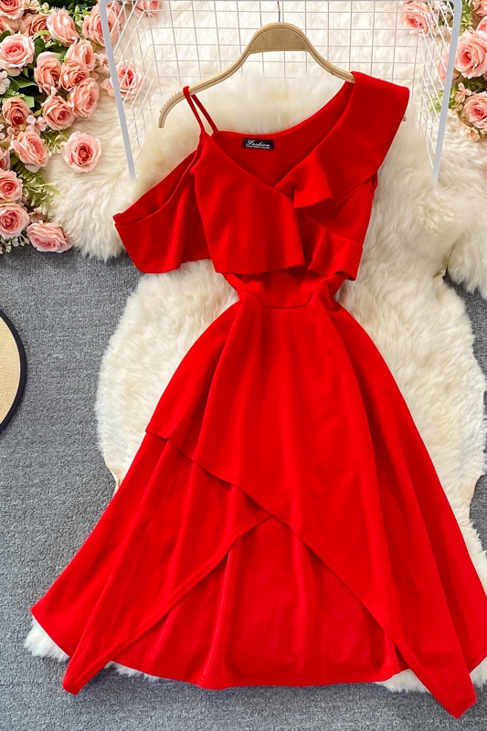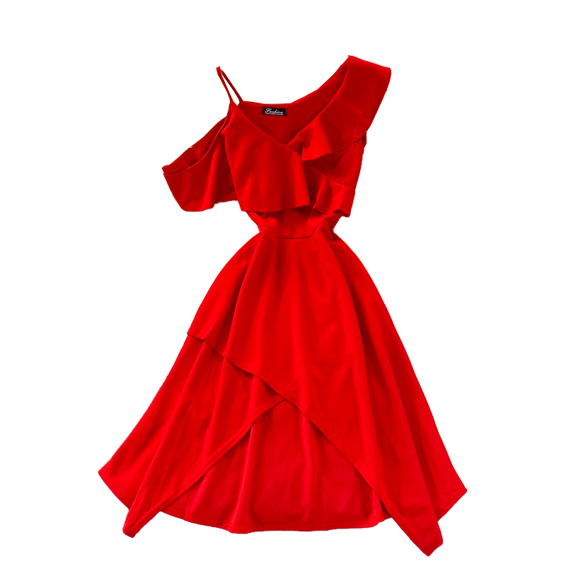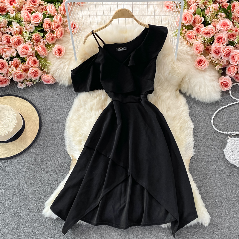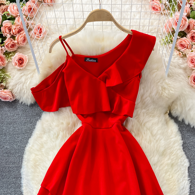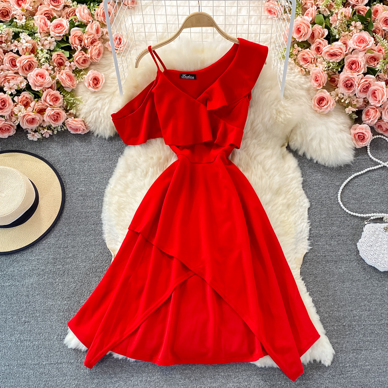 Cheap Dresses, Buy Quality Women’s Clothing Directly from China Suppliers:Summer New Elegant Sexy Cold Shoulder Elegant Irregular Design Ruffled Spaghetti Straps Dress Fashion Dress