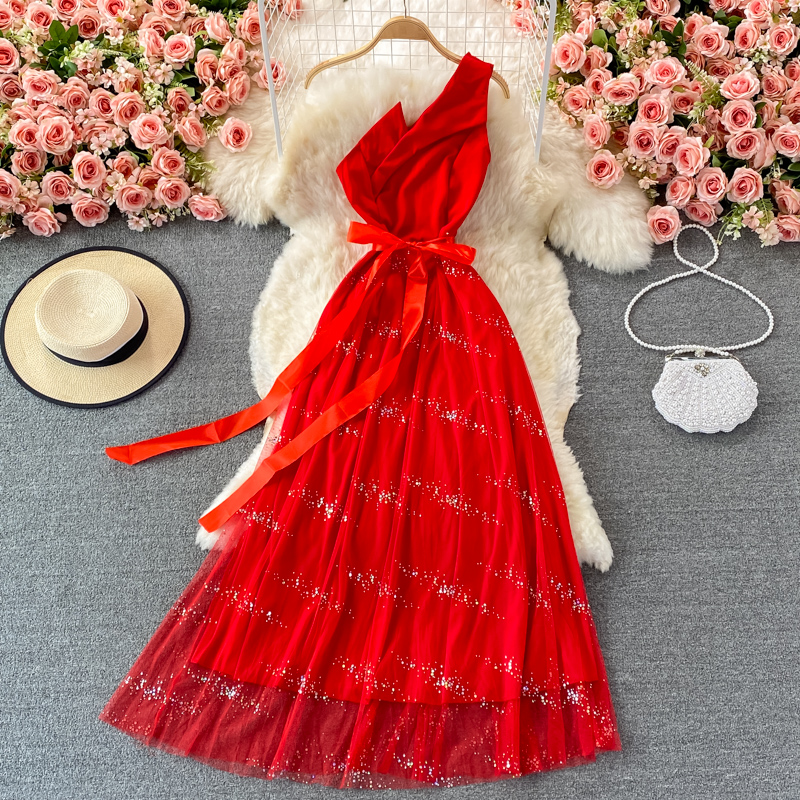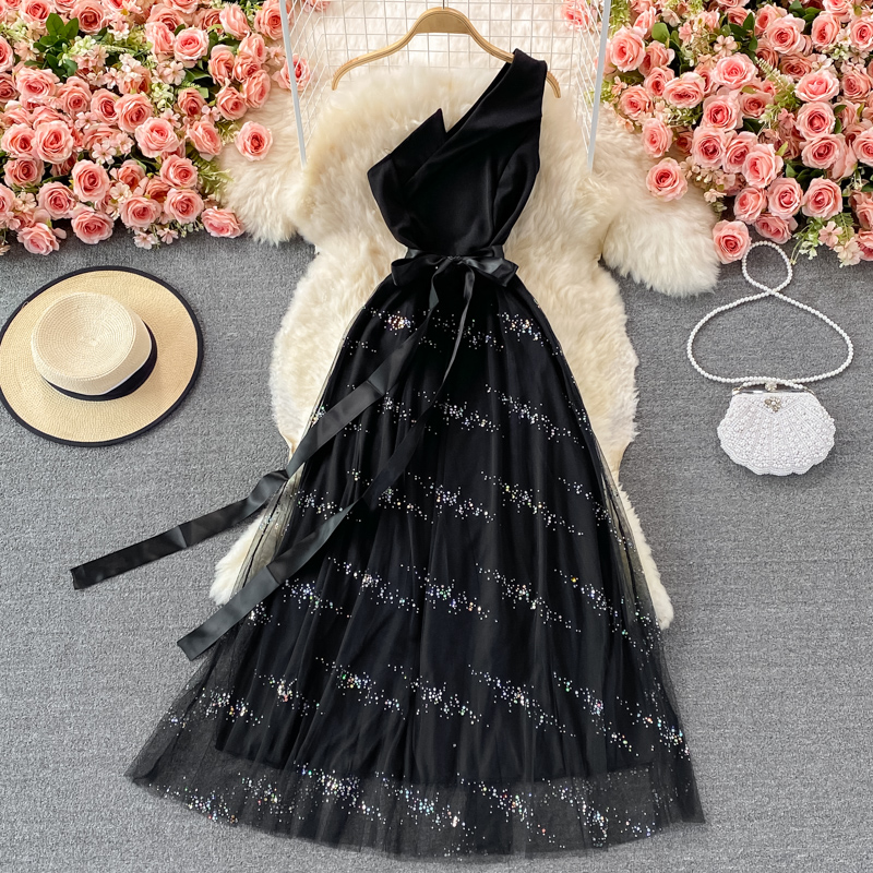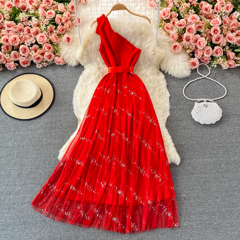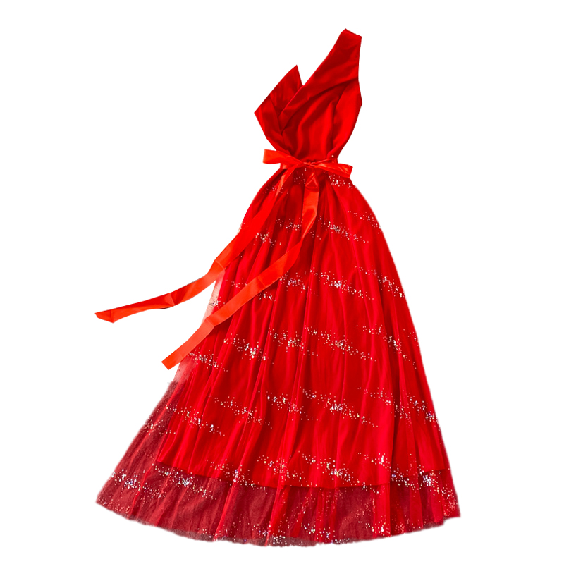 Evening dress aura queen banquet temperament ladies oblique collar unilateral off-shoulder dress elegant long skirt