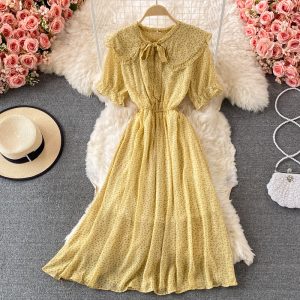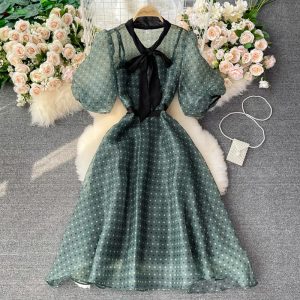 French Polka Dot Large Swing Dress Summer New Graceful Mori First Love Retro Gentle Puff Sleeve A- line Dress